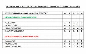 Lo schema riepilogativo di Eccellenza, Promozione, Prima e Seconda categoria in base alle retrocessioni (o meno) dalla serie D.